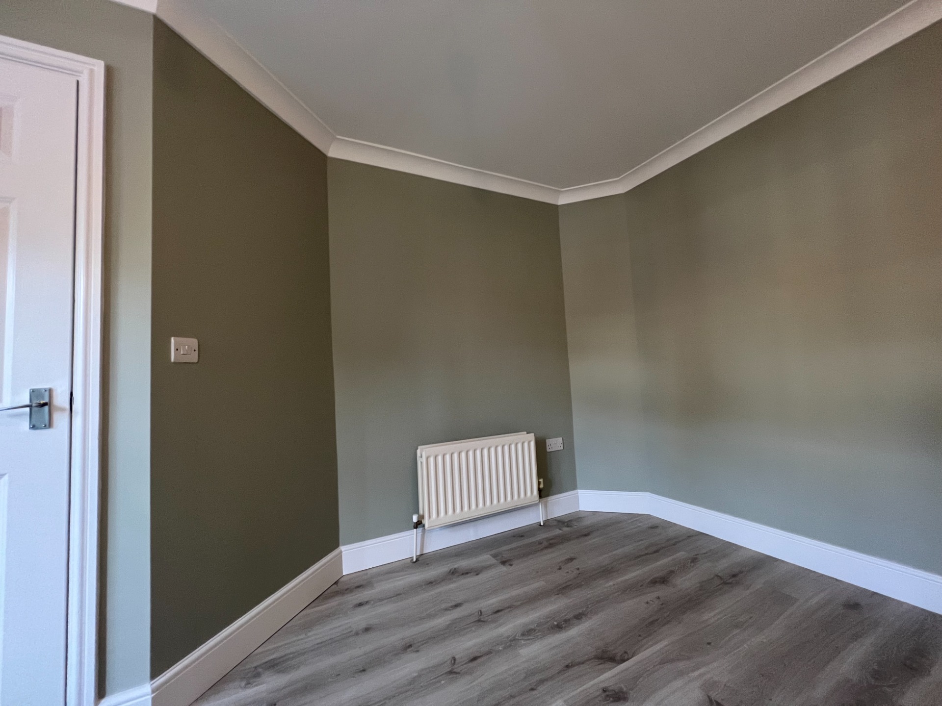 I decided to contact George to paint the entire room with olive color on the walls and the ceiling, while also painting all necessary elements, such as doors, trim, and moldings, white. George did an excellent job, the result is truly satisfying, and I will definitely recommend his contact to my friends.
