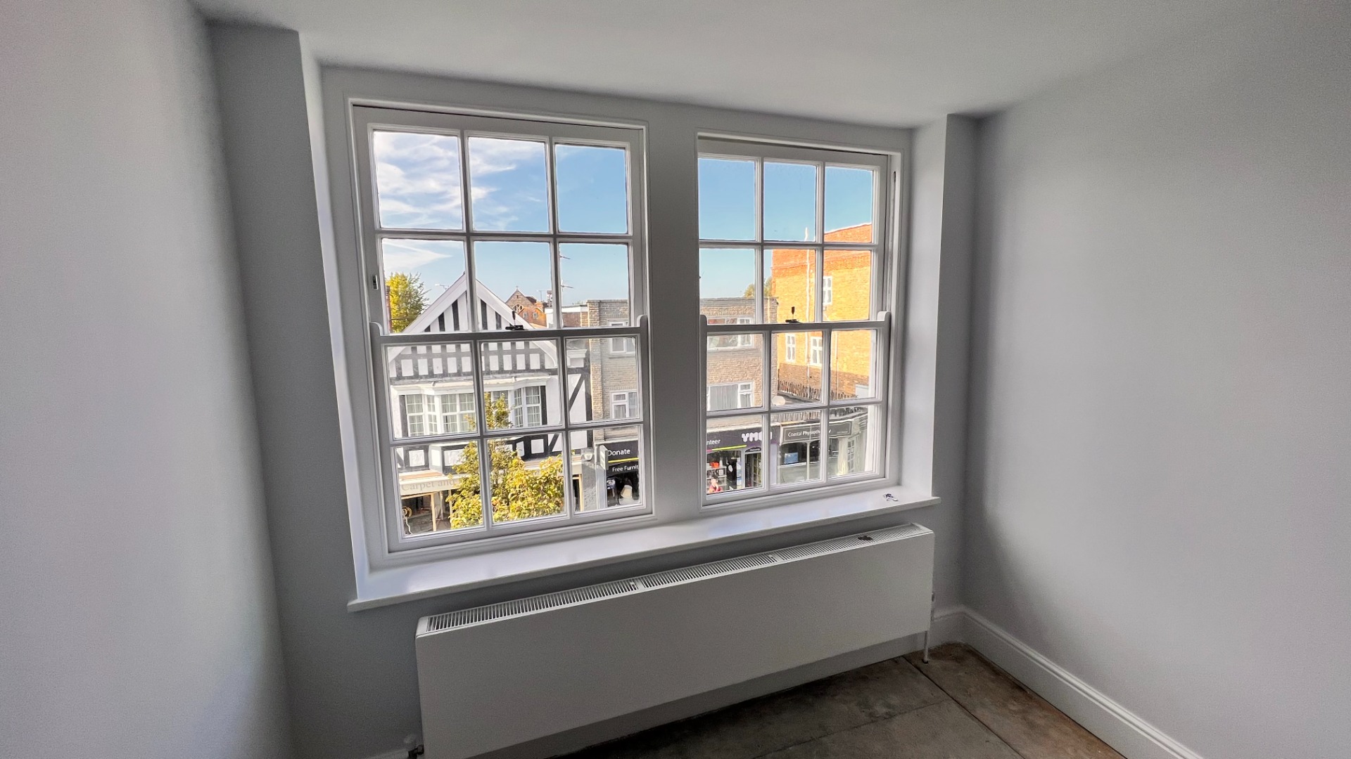 The renovation of the building's facade into a café in Stony Stratford was excellent. The white windows and black parapets look stunning. George pays attention to detail, and his work is outstanding, so I will definitely use him again.